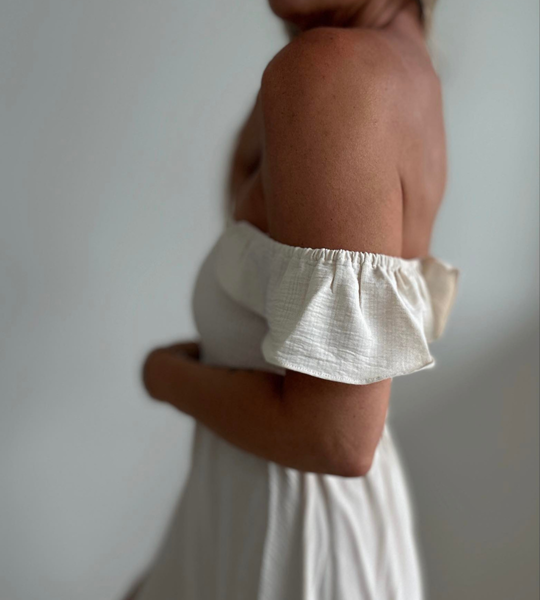 The cut of the bodice works for women of all sizes (+ maternity), giving you a cinch at your natural waist or the hint of an hourglass figure if you’re more of a boxy shape, like me. A slit at just the right length to add some skin without being too revealing.